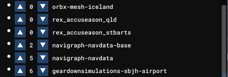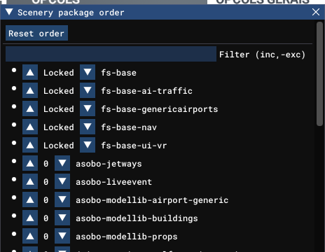 O Cenário, sempre tem que ficar em cima do Navigraph, então basta localizar o cenário do seu interesse, e aumentar o numero da ordem, pra ficar acima do navigraph-navdata, como no exemplo abaixo.